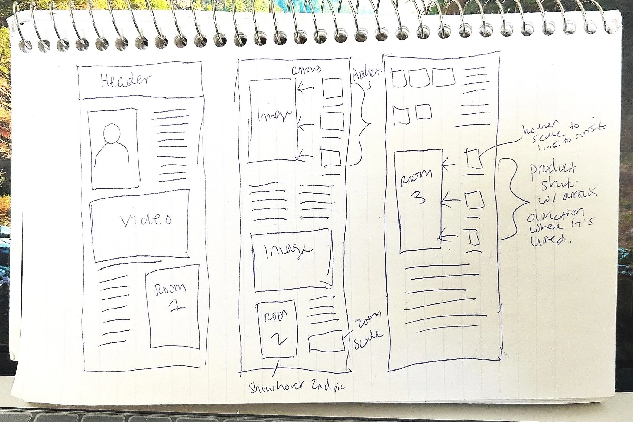 Once I have the copy and images from our team I started to sketching out landing page, and planing where the content is going to be based on what room and products were mentioned.