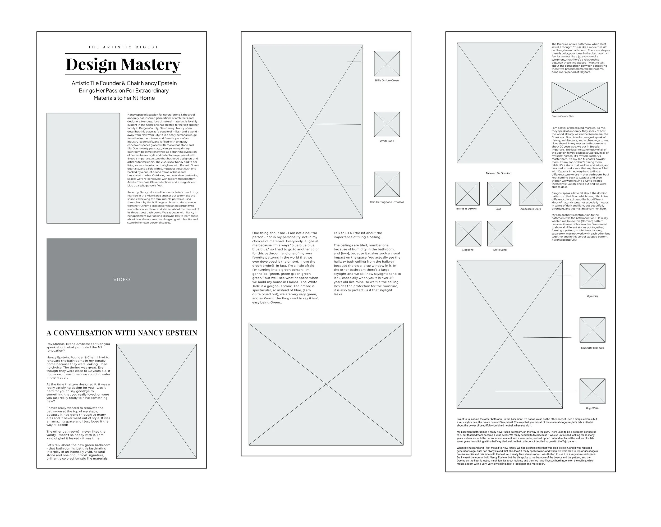 While planning and designing the layout for this digest, I noticed that it contained a lot of text. To make it more user-friendly and easier to read, I created a straightforward and clean landing page. I divided the text into different sections and included images of the renovated rooms and the products used in them. This way, users can easily navigate the page without feeling overwhelmed by the amount of text.