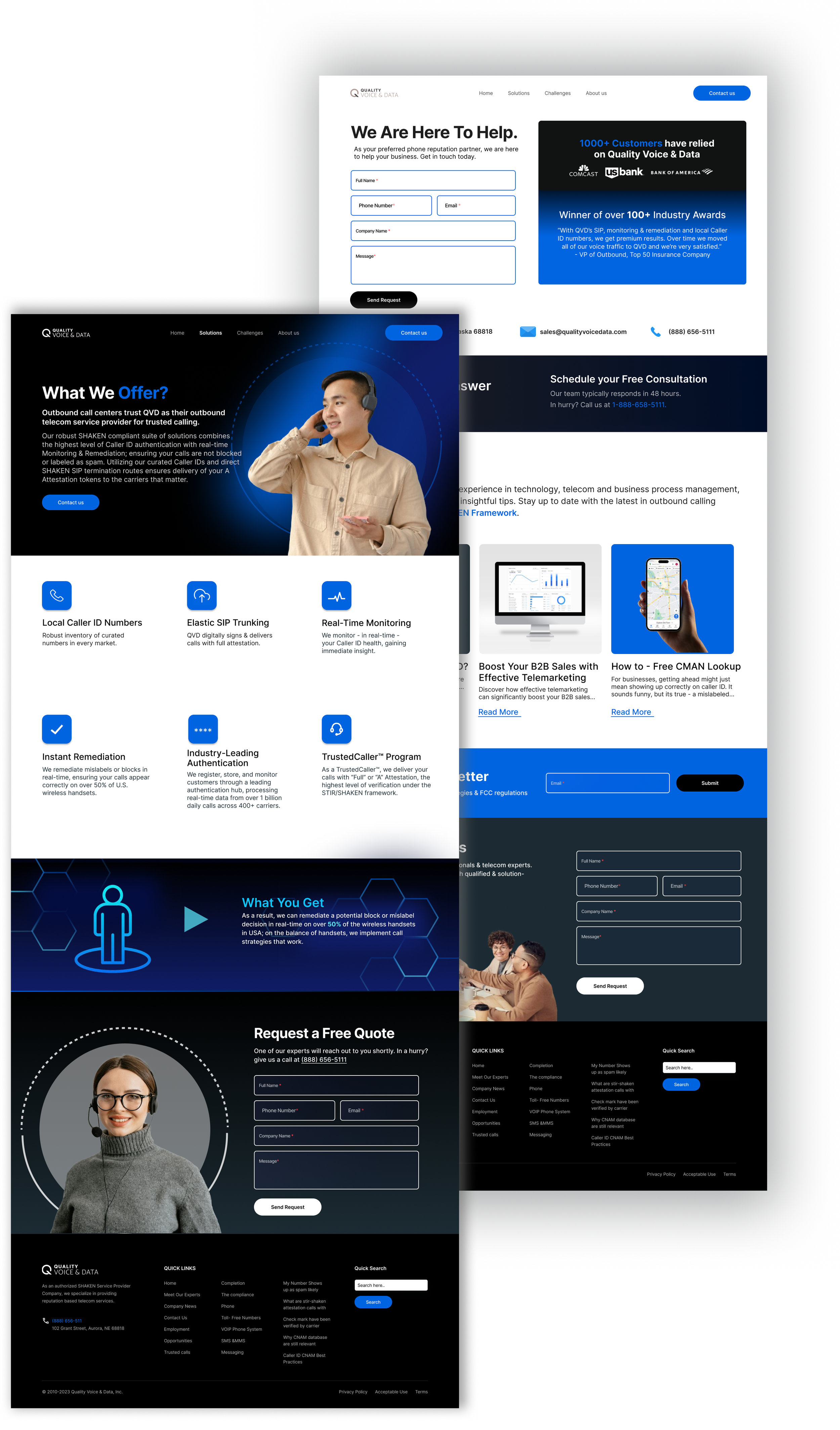 I was responsible for redesigning Quality Voice & Data's website, transforming their outdated platform into a modern and clean interface. This project involved enhancing the user experience, updating the visual design, and ensuring the website aligned with contemporary web standards while maintaining a strong focus on their brand.